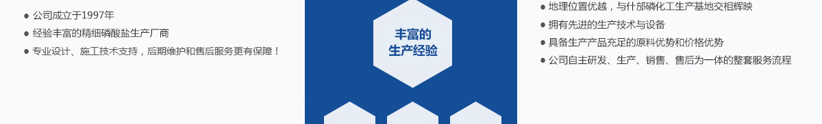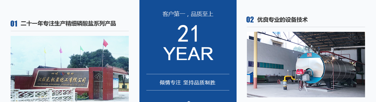 本公司位于四川省綿竹市漢旺鎮(zhèn),是自1997年成立以來至今,已發(fā)展成為四川生產(chǎn)經(jīng)驗豐富的精細磷酸鹽系列產(chǎn)品專業(yè)生產(chǎn)廠家,地理位置優(yōu)越,毗鄰四川新市和拱星工業(yè)園區(qū),與什邡磷化工生產(chǎn)基地交相輝映。主要生產(chǎn)產(chǎn)品有:磷酸二氫鉀、酸式磷酸鉀、磷酸氫二鉀、磷酸脲、磷酸二氫鈉、磷酸氫二鈉、磷酸三鈉、磷酸二氫銨、磷酸氫二銨等系列磷酸鹽產(chǎn)品。